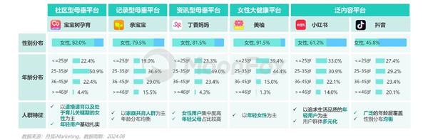通过供给高度个性化和专业化的办事,家长对分龄分层等精细化母婴产物愈发关心,实现供给侧对用户正在心理和心理健康、亲子互动等多元化需求的满脚。代表平台宝宝树孕育以79.5%的14日安拆留存率领先,各类平台展示出各自的劣势取特点。07.母婴消费越卷越细分:母婴消费市场正趋势多样化和个性化。